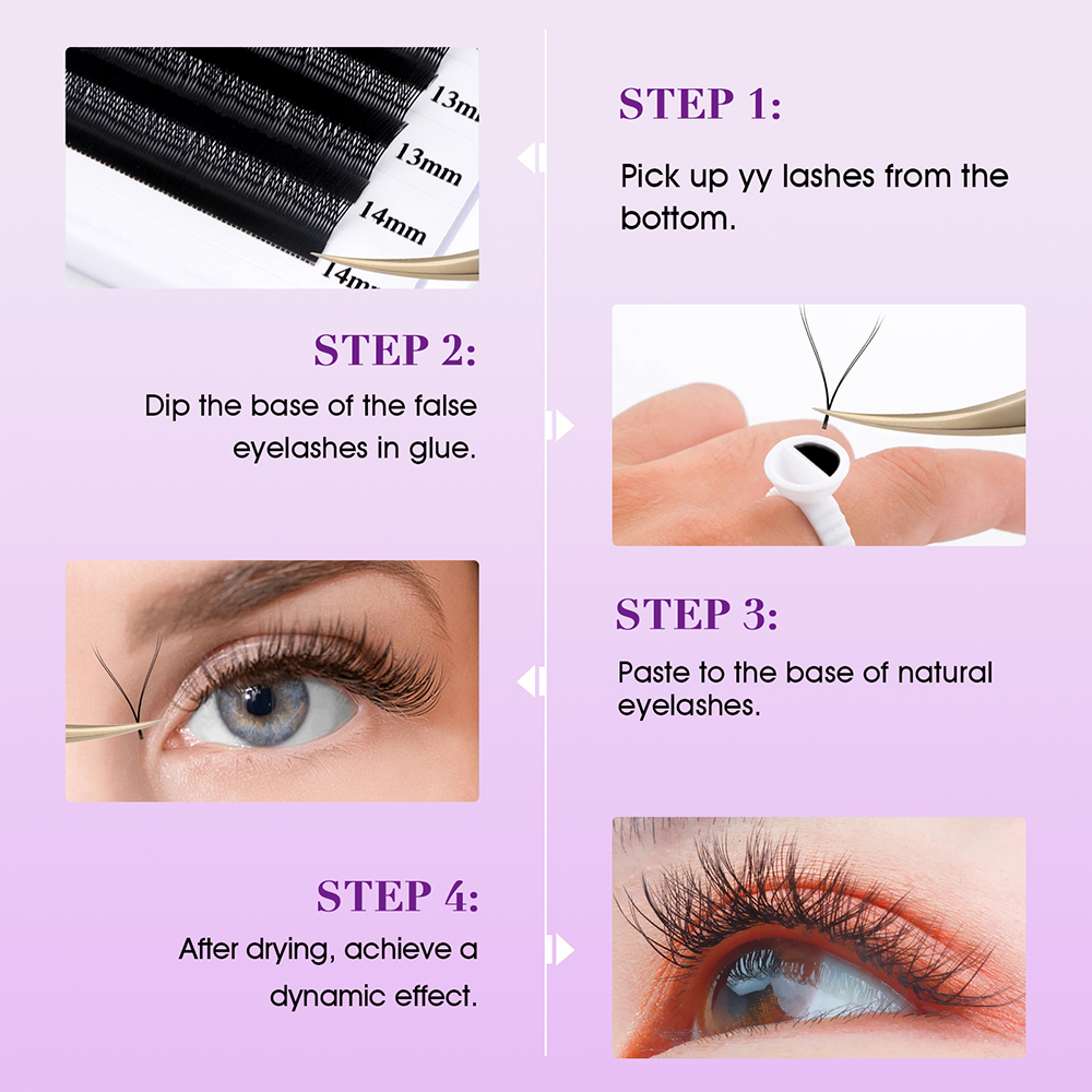 Compared to single lashes, these double-tip Y-shaped and Triple tip Y-shaped lashes Naturally thick The long stems can increase the contact area with natural eyelashes.